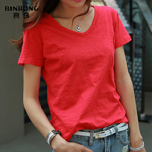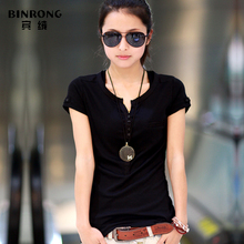 宾绒2016韩版宽松加大码短袖V领简约女士休闲T恤竹节棉潮夏款上衣