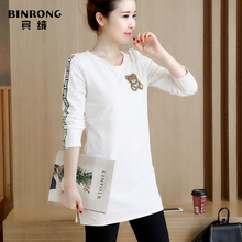 韩版胖MM宽松字母印花中长款长袖T恤包臀打底衫春装女款加大码潮