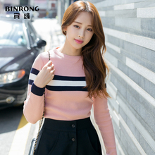 修身韩版新品大V领针织衫毛衣打底衫女士秋装条纹长袖性感上衣冬