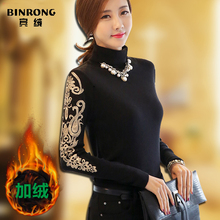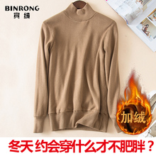 加绒加厚打底衫保暖衣修身纯色高领毛衣女装冬季针织衫打底衫韩版