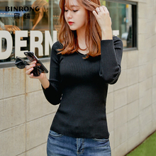 V领性感弹力长袖修身针织衫女士套头春季大码打底衫女款毛衣春装