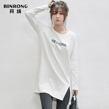韩版宽松加大码字母印花打底衫胖MM中长款包臀T恤春装女士韩范 潮