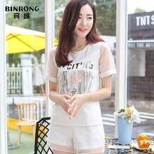 2016韩版女装夏季新款宽松显瘦两件套短袖吊带纯棉字母印花连衣裙