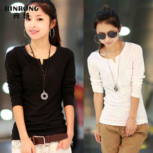 2016韩版新品春装女士长袖修身显瘦V领打底衫T恤衫纯棉宽松加大码