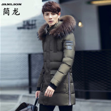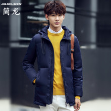 JANLION简龙 2016秋冬季新款男士羽绒服加厚中长款白鸭绒连帽外套