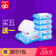 gb好孩子婴儿宝宝手口湿纸巾 带盖湿巾海洋水润86片6包新生儿U302