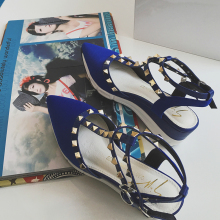 欧美2017春夏新款厚底松糕凉鞋尖头坡跟单鞋女包头高跟鞋铆钉女鞋