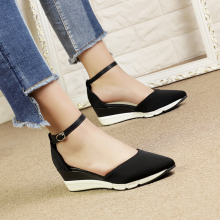 欧洲站2017春季新款厚底松糕凉鞋坡跟中空单鞋女尖头高跟鞋女鞋夏
