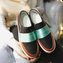 2017新款鞋子真皮乐福鞋女加绒厚底松糕鞋拼色休闲明星同款懒人鞋