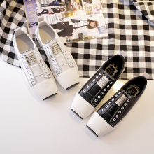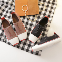2017新款方头平底真皮小白鞋韩版休闲运动板鞋女一脚蹬懒人女鞋夏