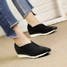 内增高坡跟女鞋春2017新款丝绒毛毛鞋加绒厚底鞋天鹅绒高跟鞋单鞋
