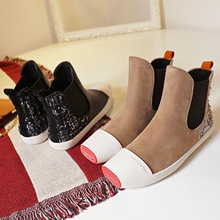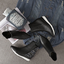 欧洲站2017新款女春季马丁靴加绒切尔西高跟靴子女尖头坡跟短靴