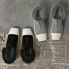 真皮一脚蹬毛毛鞋女秋冬2016新款平底休闲鞋加绒单鞋小白鞋女鞋冬