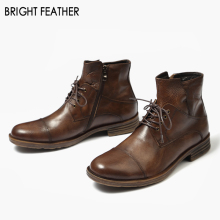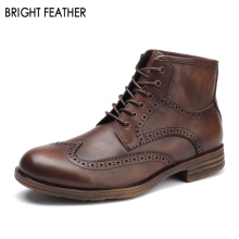 欧美复古男鞋时尚真皮高帮雕花圆头皮靴潮流做旧牛筋软底短靴男靴