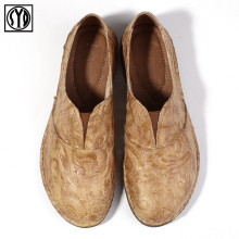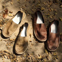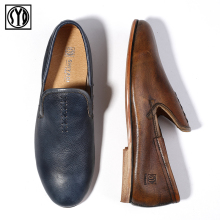原创手工艺做旧男鞋 日系小羊皮扁头雕花复古潮流浅口休闲皮鞋男