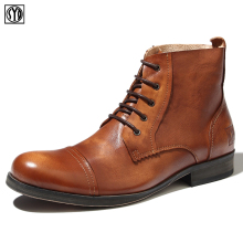SYD欧美复古男靴真皮高帮做旧短靴潮流圆头马丁靴意大利手工皮靴