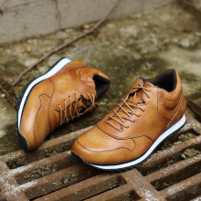 春秋英伦风尖头复古男鞋时尚真皮中邦运动休闲鞋潮流做旧慢跑鞋男