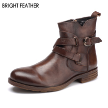 欧美风真皮复古男靴 侧拉链搭扣高帮短靴 机车皮靴男