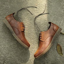 春秋新品欧美风简约男鞋时尚真皮透气做旧休闲皮鞋百搭复古皮鞋男