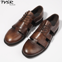 16夏欧美复古男鞋时尚透气做旧男士真皮休闲凉鞋男潮流包头罗马鞋