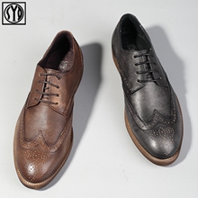 春秋新品欧美风复古男鞋真皮手工水洗做旧布洛克雕花圆头休闲皮鞋