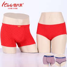 意大莱情侣内裤性感纯棉平角裤男士本命年大红色内裤女三角裤结婚