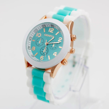 新款韩版手表 硅胶中性拼接色果冻学生手表男孩女孩运动表批发