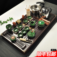 龙浔黑檀木乌金石功夫茶具套装特价整套紫砂汝窑花梨实木茶盘家用