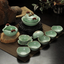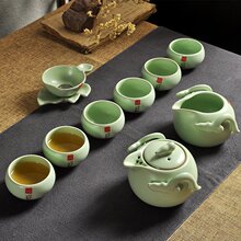 正品高档天青开片汝窑茶具套装如意壶大9头整套陶瓷功夫茶具礼盒