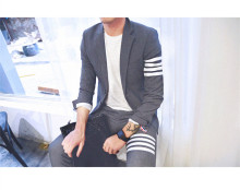 春夏款青少年四条杠TB西服休闲修身时尚西装两件套大小码潮男灰