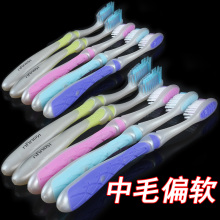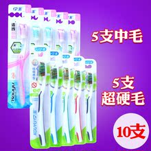 中毛牙刷成人10支正品中等硬度家庭装磨圆流线型刷毛舌苔清洁
