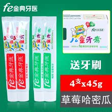 儿童牙膏3-6-12岁水果味套装无氟防蛀牙fe金典牙医儿童牙膏可吞咽
