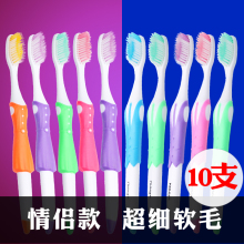 软毛牙刷10支成人家庭装情侣超细软抗菌家用细毛特价独立包装