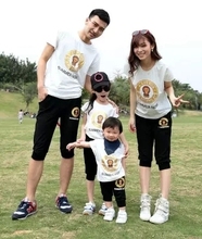 亲子装夏装全家装家庭装三口装母女母子装迷彩纯棉短袖T恤潮