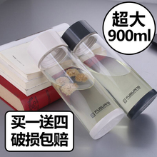 富光单层玻璃杯900ml/680ml双层超大男士透明带盖耐热喝水大口杯