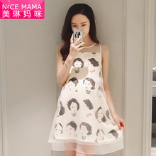孕妇连衣裙欧根纱款中长款孕妇装秋装韩国无袖孕妇裙秋季2016新款
