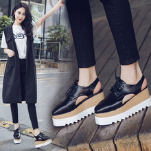 夏季2017新款罗马凉鞋女厚底真皮松糕鞋英伦风魔术贴学生大码女鞋