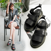 夏季2017新款英伦风搭扣罗马鞋休闲露趾厚底松糕鞋平底凉鞋女鞋