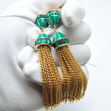 DNQUEEN 孔雀绿宝石水钻流苏项链女长款耳环耳钉