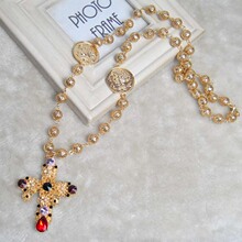 欧美gd巴洛克密西西比风十字架大毛衣链拜占庭风花朵宝石项链女