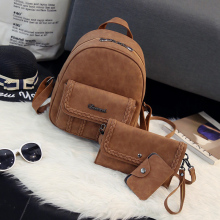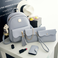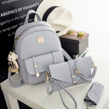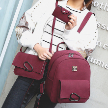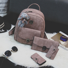 2016秋冬新款复古四件套双肩包韩版学院风pu女士背包书包旅行包潮