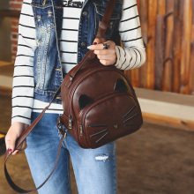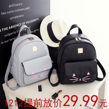 包包2016新款pu复古小猫双肩包女韩版时尚百搭学院风学生书包背包