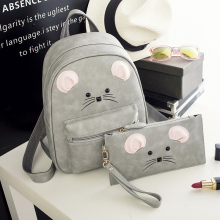 包包2016新款pu卡通老鼠双肩包女韩版时尚百搭学院风学生书包背包