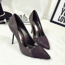 新款时尚百搭真皮马毛欧美尖头高跟鞋女性感细跟显瘦浅口公主单鞋