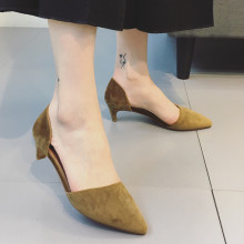 2017春夏新款欧美丝绒尖头小猫跟单鞋浅口粗跟单鞋中跟职场女鞋子