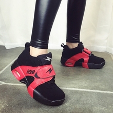 2017春秋真皮运动高帮鞋韩版红黑色魔术贴休闲女单鞋学院风潮学生