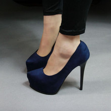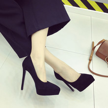 2017春秋超高跟鞋女细跟尖头防水台单鞋欧美性感夜店浅口绒面女鞋