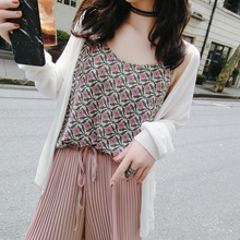 蝇蝇 韩版清新小碎花吊带雪纺背心女短款宽松显瘦内搭性感打底衫