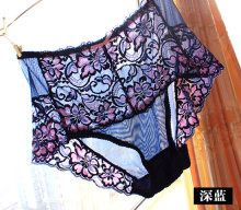 挥泪甩 中腰中大码女性感胖mm透明网纱蕾丝莫代尔裆无痕三角内裤