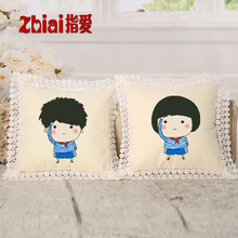 十字绣抱枕一对卡通动漫少先队员可爱情侣靠垫花边米黄枕套靠垫